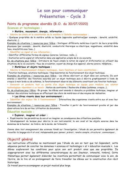 Page 1 du PDF de présentation : le son pour communiquer