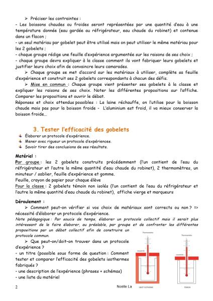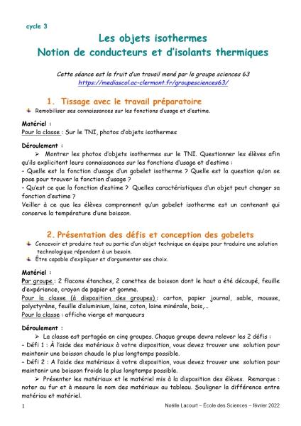 Le travail sur les gobelets isothermes a été élaboré par le groupe sciences 63