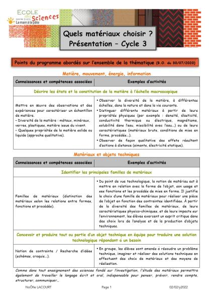 Matière et Matériaux